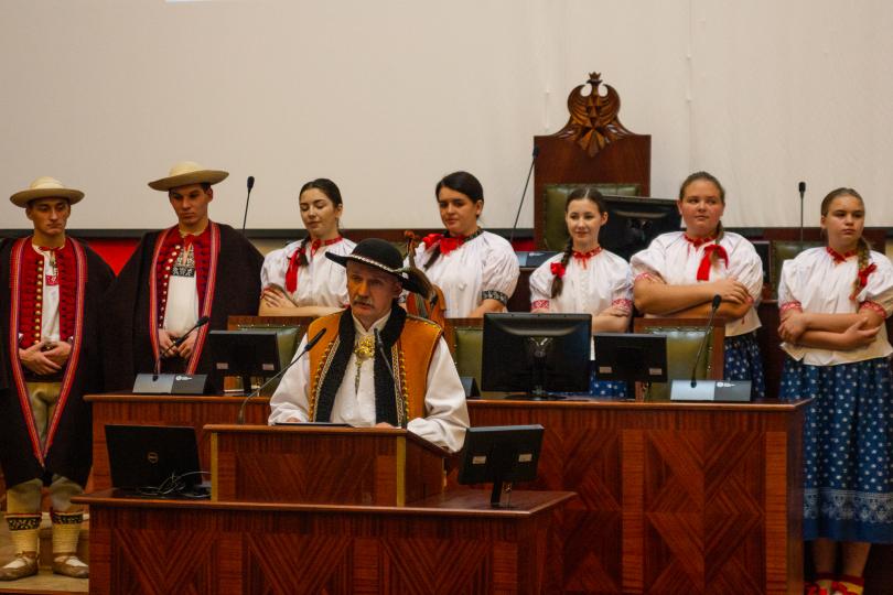 W Sali Sejmu Śląskiego odbyła się dziś konferencja "Pasterstwo jako źródło kultury górali beskidzkich" zorganizowana przez Urząd Marszałkowski Województwa Śląskiego. Podczas konferencji wicemarszałek województwa śląskiego Beata Białowąs wraz z wicewojewodą śląskim Janem Chrząszczem wręczyli Medal „Zasłużony Kulturze Gloria Artis” nadany przez Ministra Kultury i Dziedzictwa Narodowego, który otrzymała kapela „Wałasi” z Istebnej. W imieniu zespołu wyróżnienie odebrał Zbigniew Wałach – muzyk i budowniczy instrumentów regionalnych, który w trakcie konferencji zaprezentował najciekawsze egzemplarze z własnych zbiorów. „Złotą Odznakę Honorową za Zasługi dla Województwa Śląskiego” otrzymała Maria Banachowicz, która przez lata pracowała na rzecz kształcenia ustawicznego m.in. w zawodzie juhasa i bacy. „Srebrne Odznaki Honorowe za Zasługi dla Województwa Śląskiego” otrzymali natomiast członek Prezydium Zarządu Głównego Związku Podhalan Oddział Górali Śląskiej Józef Michałek oraz baca Piotr Kohut. W wydarzeniu udział wziął wicewojewoda śląski Robert Magdziarz. Laudację na cześć nagrodzonych wygłosił Prezes Zarządu Głównego Związku Podhalan Andrzej Skupień