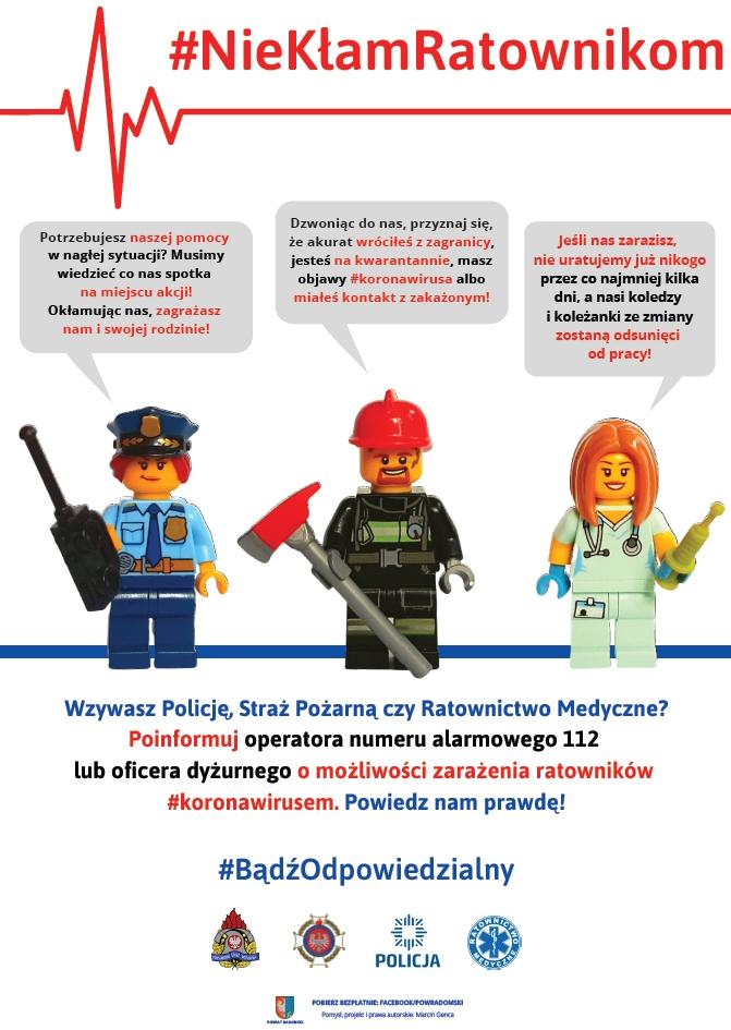 Wzywasz nas na interwencję...powiedz nam prawdę. Pamiętaj, że ukrywając fakty o swoim stanie zdrowia, kontakcie z osobą potencjalnie zakażoną czy przebywaniu w strefie zakażenia, utrudniasz nam niesienie pomocy innym. Dlatego przypominamy - #NieKłamRatownikom