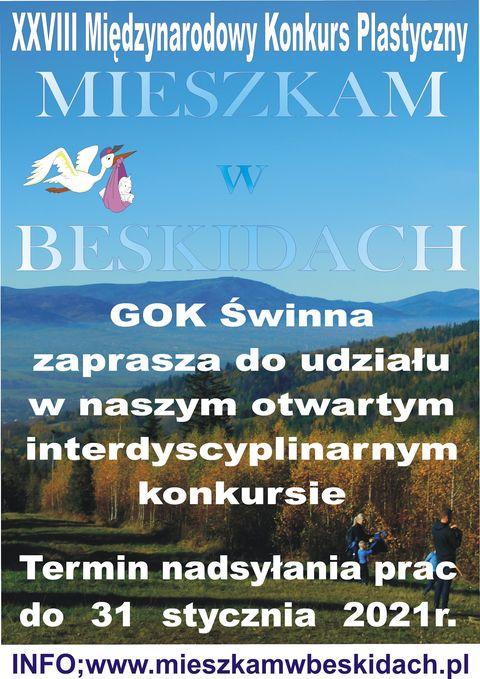 Międzynarodowy Konkurs Plastyczny „Mieszkam w Beskidach” ma na celu rozbudzanie i poszerzanie wśród dzieci, młodzieży i osób dorosłych szeroko rozumianych zainteresowań plastycznych, ze szczególnym ukierunkowaniem na poznanie folkloru i sztuki ludowej.