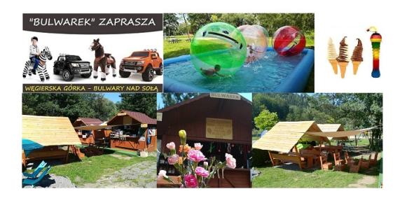 Kule wodne, wypożyczalnia autek i koników, lody, serki góralskie, pamiątki - "Bulwarek" Węgierska Górka, Bulwary nad Sołą