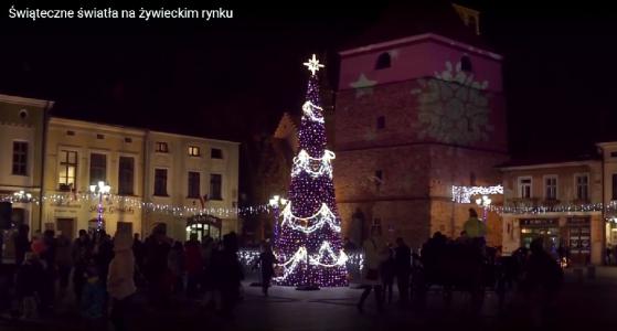 Świąteczne światełka i dekoracje na żywieckim rynku