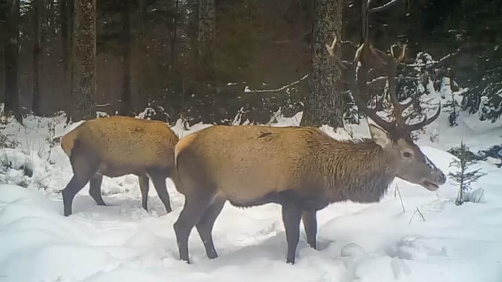 Zima to trudny czas dla zwierząt, ale radzą sobie :). Zwierzyna schodzi z wyższych szczytów, gdzie zalega duża, gruba warstwa śniegu, na niżej położone tereny. Za dnia jelenie żerują tam, gdzie czują się absolutnie bezpieczne, są to m.in. polanki pomiędzy gęstwinami leśnymi no i oczywiście "wychodzą na wieś" :D