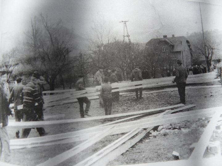 We wczesnych godzinach porannych na fundamentach budowy przy piekarni Państwa Ślaziaków zostaje odprawiona msza. Staje prowizoryczny ołtarz z pustaków. Szybko roznosi się wieść o budowie. Oddajemy głos księdzu Nowobilskiemu: „Starsze kobiety i młodzież podawały cegły z ręki do ręki, aż do poszczególnych murarzy, ponieważ wraz z rozpoczętą budową rozbierano piekarnię (...). W tym samym czasie z Placu Drożdżów, gdzie była przygotowana więźba dachowa, furmani wozami przewozili ją na budowę i składali na polach w pobliżu Soły. Zwoził też ze wsi pustaki, cegłę i inne materiały budowlane ofiarowane na budowę przez mieszkańców Ciśca. (...) Praca w całej pełni rozwinęła się około godziny 9, wszystko przebiegało sprawnie, atmosfera z pełnej obaw przerodziła się w entuzjazm (...). Gdy zaczęły mury wznosić się coraz wyżej, trzeba było stawiać rusztowania, by zgodnie z propozycją ks. Przewrockiego wymurować mur do wys. 5,5 m. Pomyślano też o posiłkach, zwłaszcza dla murarzy, by nie musieli iść do domu. I już około 10 godziny był pierwszy posiłek, w którym i ja uczestniczyłem”.