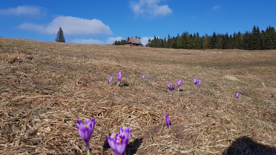 Miano pierwszej Krokusowej Łąki 2018 należy do Krawcowego Wierchu. Bowiem jako jedne z pierwszych w tym roku pojawiły się na Hali Krawcula. Większość polan położonych powyżej 1000 m n.p.m. jest jeszcze pokryta śniegiem, ale tu, dzięki południowej wystawie, wiosna w pełni! Kwiatków jest około 300. Zatem zapraszamy na KROKUSY!