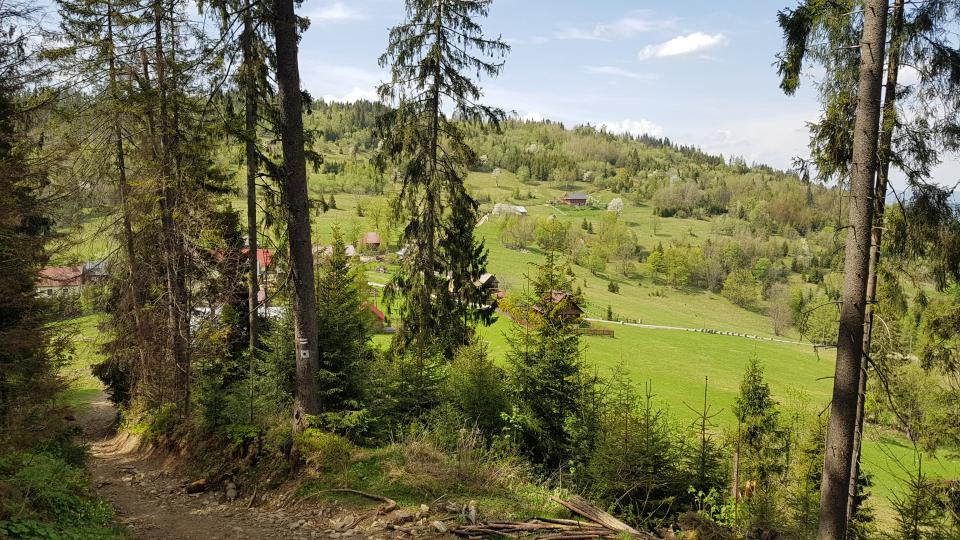 Teraz rozpoczynamy drogę powrotną i będziemy wędrować kilkoma szlakami więc warto zachować uwagę. Rozpoczynamy szlakiem żółtym w stronę Soblówki i po 900 m dochodzimy do Skrzadnity (dołacza szlak zielony), do dolnej części Hali Rycerzowa, którą możemy teraz podziwiać z dołu.