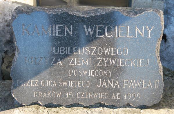 Jubileuszowy Krzyż Ziemi Żywieckiej został zaprojektowany przez mgr inż. Jacka Niedźwieckiego i mgr inż. Józefa Pasierbka, a wykonany przez Mostostal Zabrze Zakład Montażowo - Produkcyjny Czechowice. Ma wysokość dokładnie 23,5 metra.